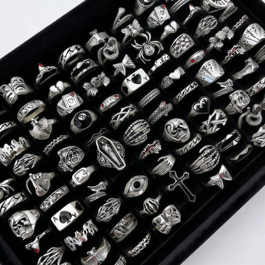 10/20/30/50/100Pieces Vintage Punk Skull Eye Rings Set for Women Men Mix Style Hip Hop Finger Ring Jewelry Party Gift